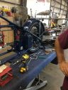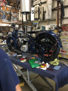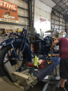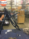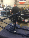 Here are a few pictures of the Pride Runner during the build process. We even decided on a blue and gray paint scheme to show the Romney Middle School Pioneer Pride as the students follow the bike in Mr. Groves’ 7th grade geography class while she travels across the United States. Her first stop will be at the middle school to show the students how she turned out before we head to Portland, ME for the start of the race.